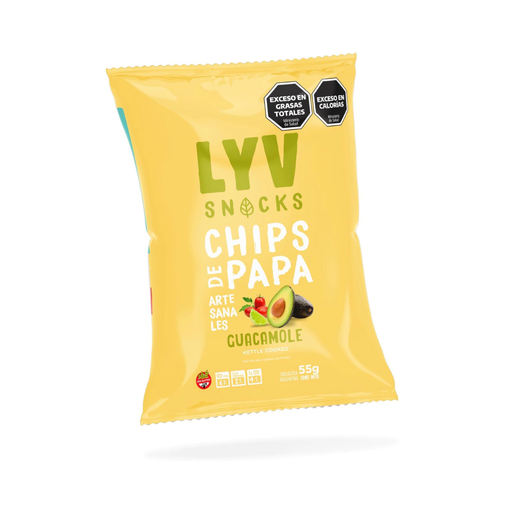 Chips de Papa Kettle Cooked Guacamole x 55g - Lyv Snacks - Chips de papa al estilo kettle con sabor a guacamole, crujientes y llenas de sabor, perfectas para cualquier ocasion.