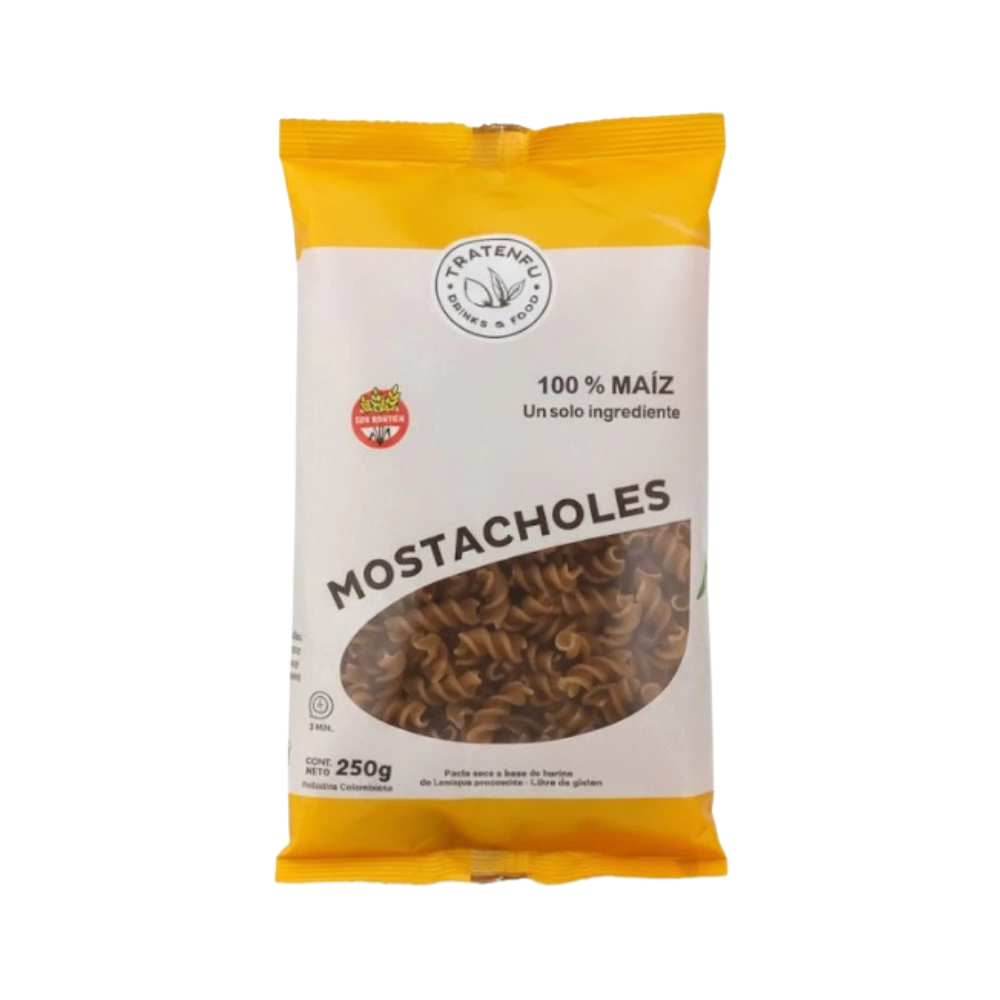 Fideos mostacholes 100% maiz Tratenfu 250g. Elaborados solo con maiz, ofrecen una alternativa sin gluten y versatil para diferentes salsas.