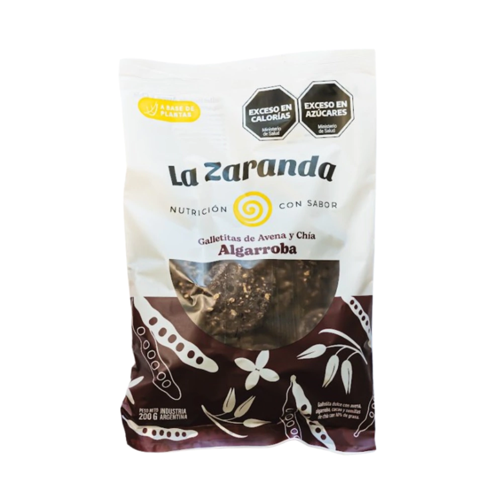 Galletitas de avena y chia con algarroba La Zaranda 200g. Sabor intenso y natural, elaboradas con ingredientes saludables.