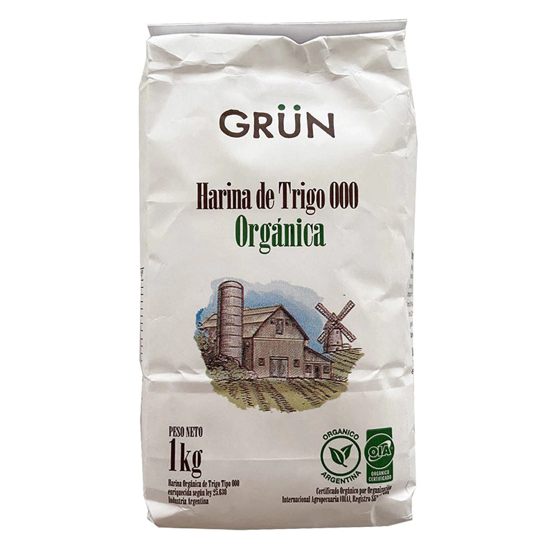 Harina de trigo 000 organica de 1kg, ideal para preparaciones saludables y diversas recetas culinarias.
