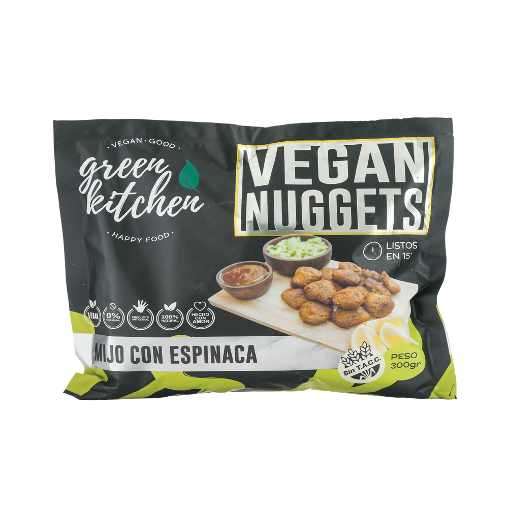Nuggets de mijo y espinaca de 300g, una opcion vegana y nutritiva para una comida rapida y saludable.