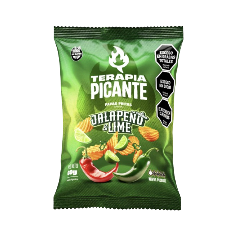 Papas fritas hot siracha Terapia Picante 60g. Chips crocantes con toque picante estilo siracha, sabor intenso y audaz para amantes del picante.