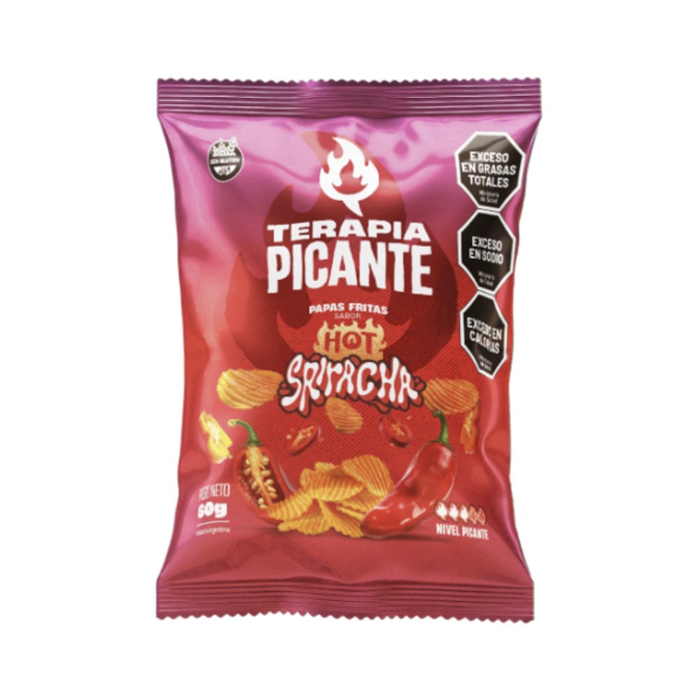 Papas fritas jalapeno & lime Terapia Picante 60g. Mezcla equilibrada de jalapeno con lima, crocantes y con un perfil fresco y especiado.