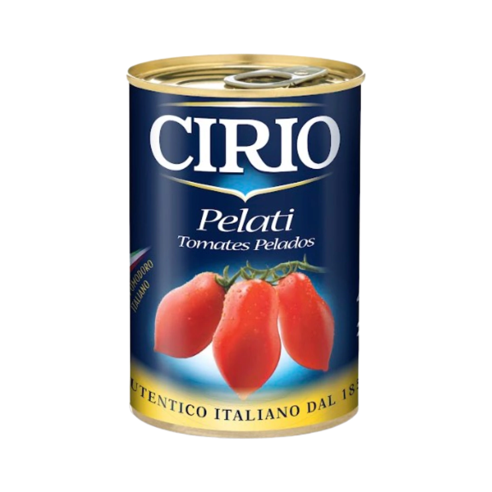 Pelati tomates pelados Cirio 400g. Tomates italianos enteros y pelados, envasados en su jugo natural. Ideales para salsas y guisos.