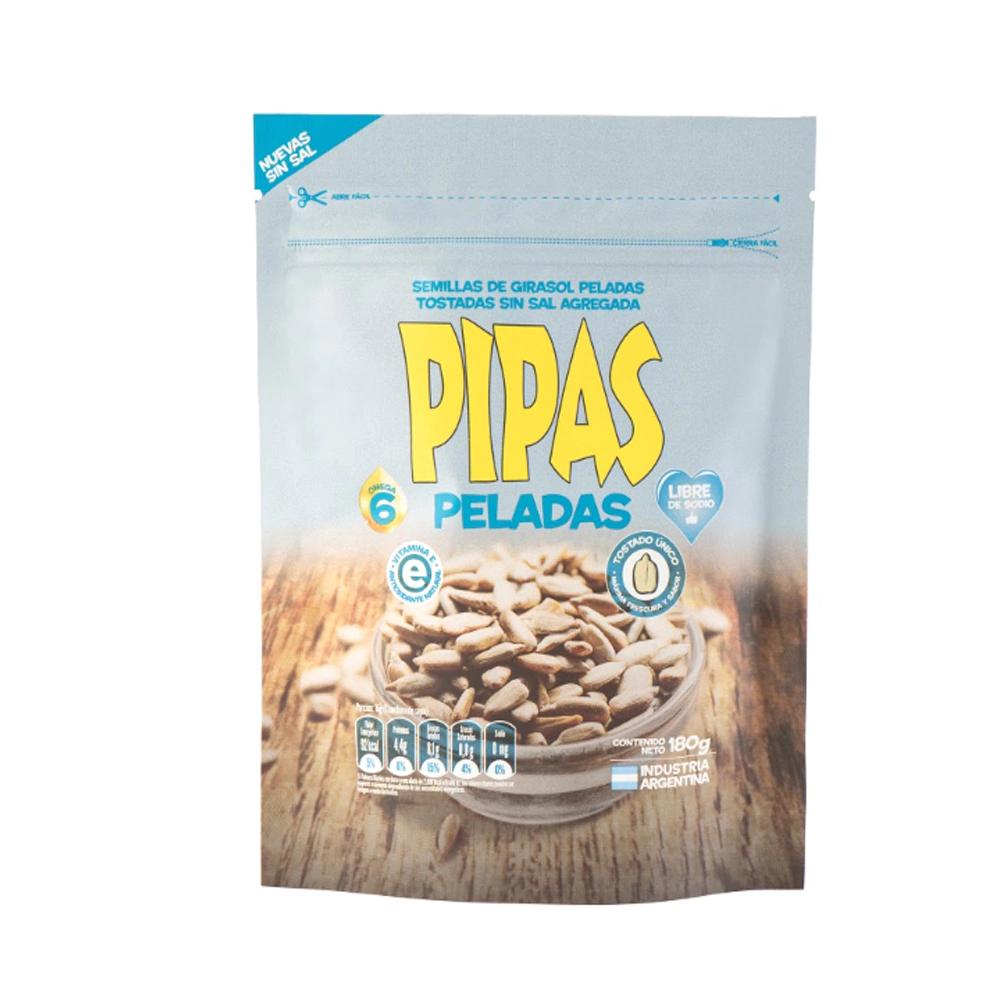 Pipas peladas sin sal de 180g de Pipas, una opcion saludable y crujiente para tus snacks.