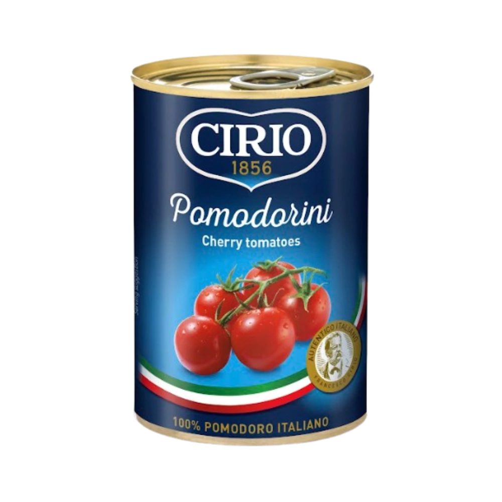 Pomodorini tomates cherry Cirio 400g. Tomates cherry dulces y jugosos en su jugo natural. Perfectos para ensaladas y pastas.