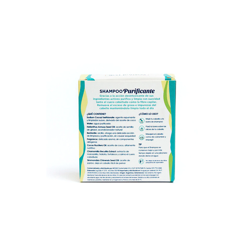 Shampoo solido purificante para cabello graso de 65g, una opcion natural y ecologica para mantener tu cabello limpio y saludable.