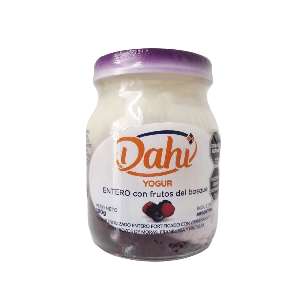 Yogurt Entero con Frutas del Bosque de 190g de Dahi, un yogurt cremoso y delicioso con una mezcla de frutas del bosque.